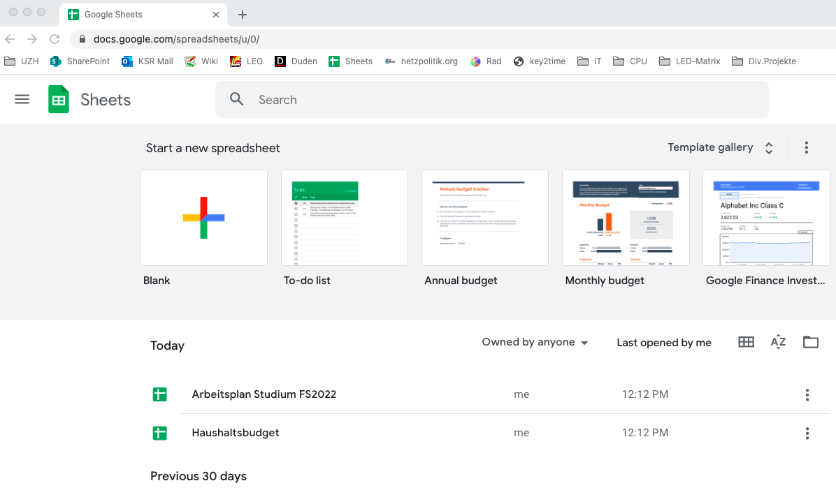 - Gehe auf https://docs.google.com/spreadsheets/ – hier musst du dich evtl. anmelden. Du solltest auf so einer Seite landen: sheets4beginners_01.png